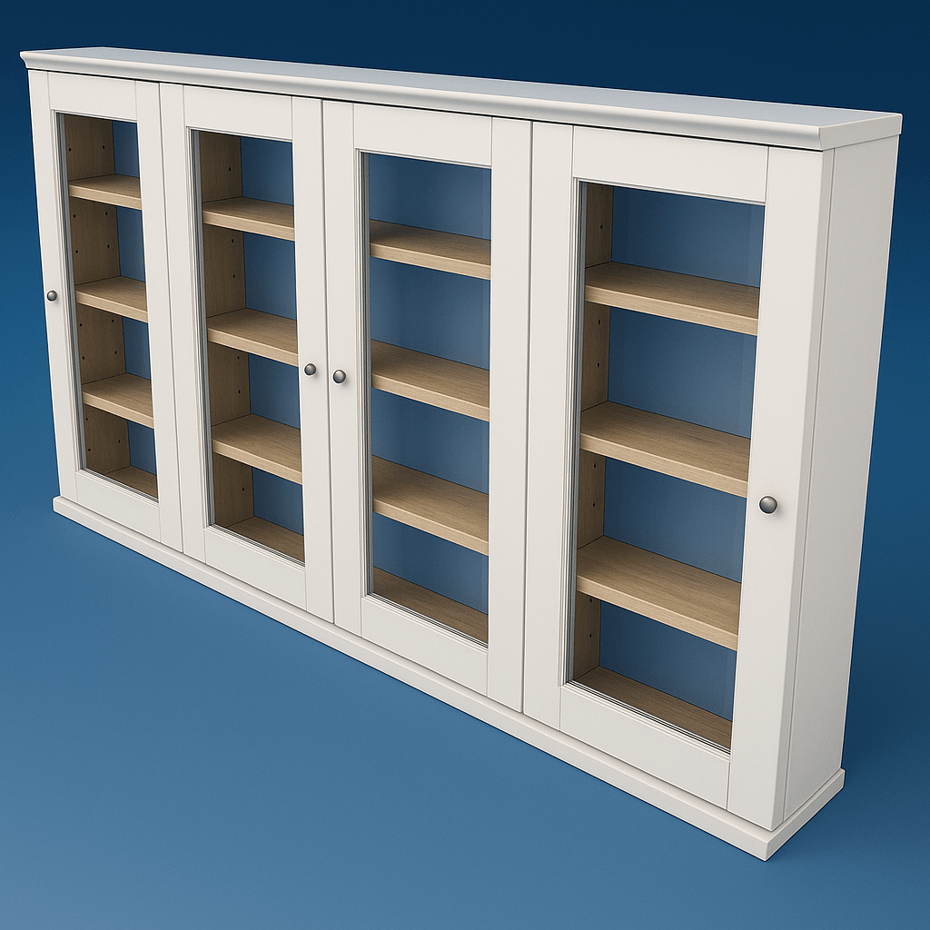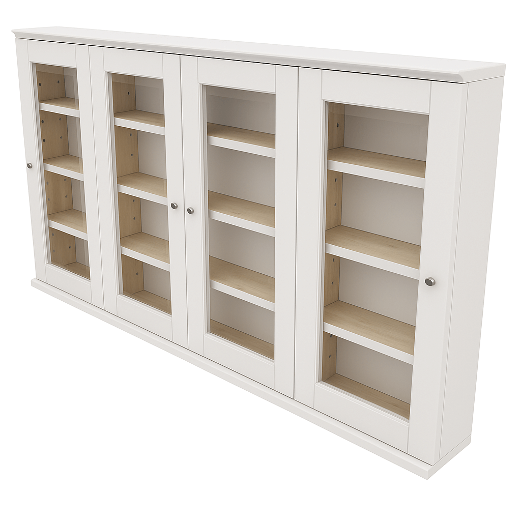 • Style: Timeless white finish with glass display doors (adaptable to your style).